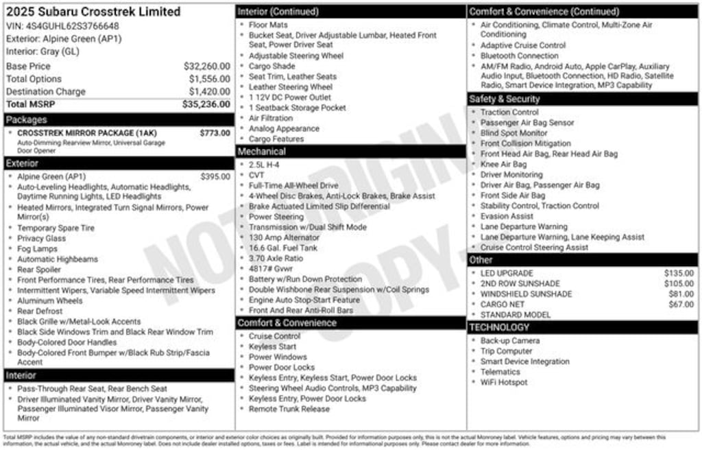BIG upgrade from 18 Premium Manual. Finally I have the style and tech from the Crosstrek. Speefy car thats great in snow! Mileage appears to be disappointing so fa though… - 5.0