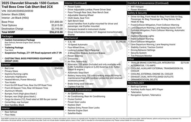 2025 Chevrolet Silverado 1500 Custom Trail Boss SG245930for Sale near Nashville, TN