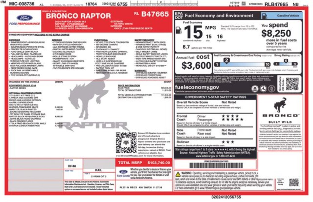 Used 2024 FordBronco Raptor RLB47665for Sale near Nashville, TN
