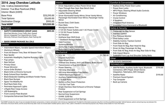 2016 Jeep Cherokee Latitude FWD SW337048for Sale near Nashville, TN