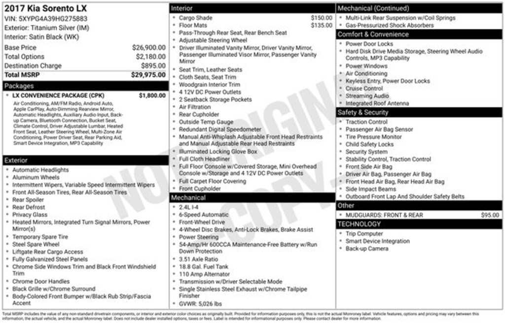 - Wheels: 17" x 7.0 Alloy