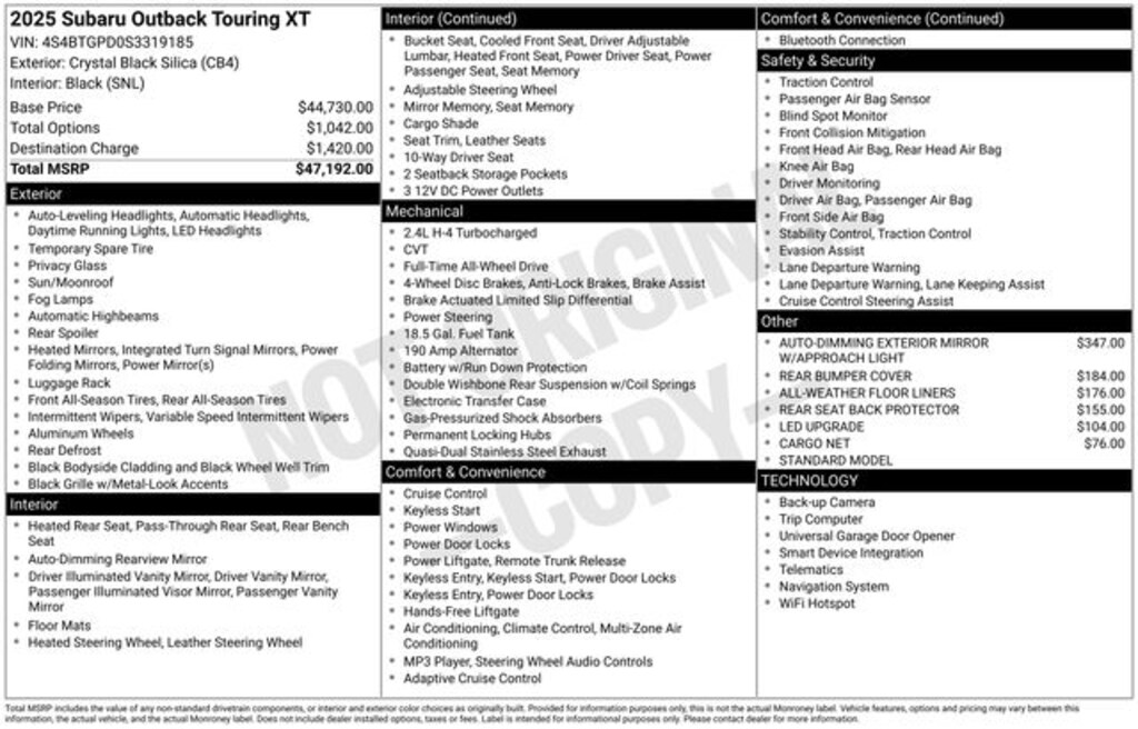 - Emergency communication system: MySubaru Safety (3-year free trial)
